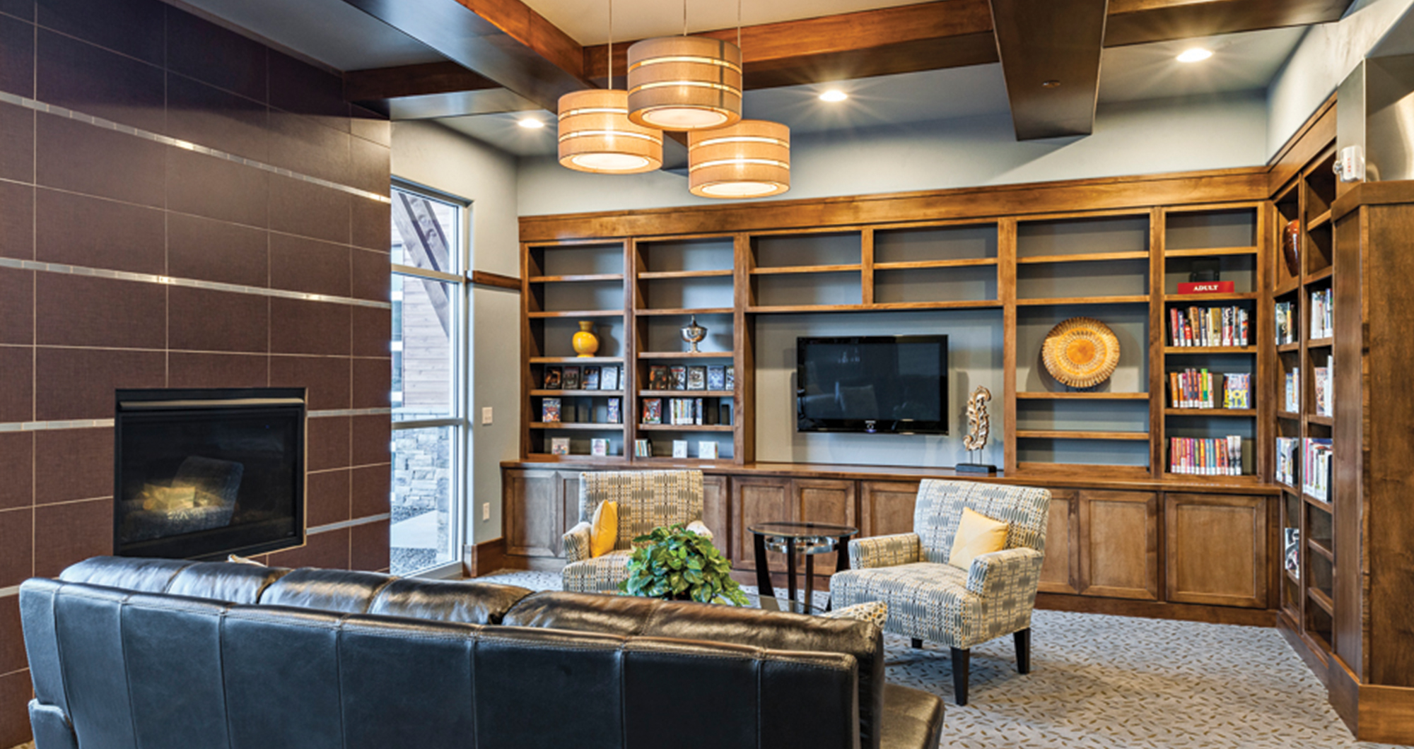 CSHQA worked with the developer to plan a formal entry sequence including stone pillars with capstones. The Clubhouse entry creates a grand corner with a floating lantern roof structure to mirror the pillars and establish the building as the centerpiece of the commercial district. Glass, stone, wood and metal are combined for a modern, contemporary look from all vantage points.