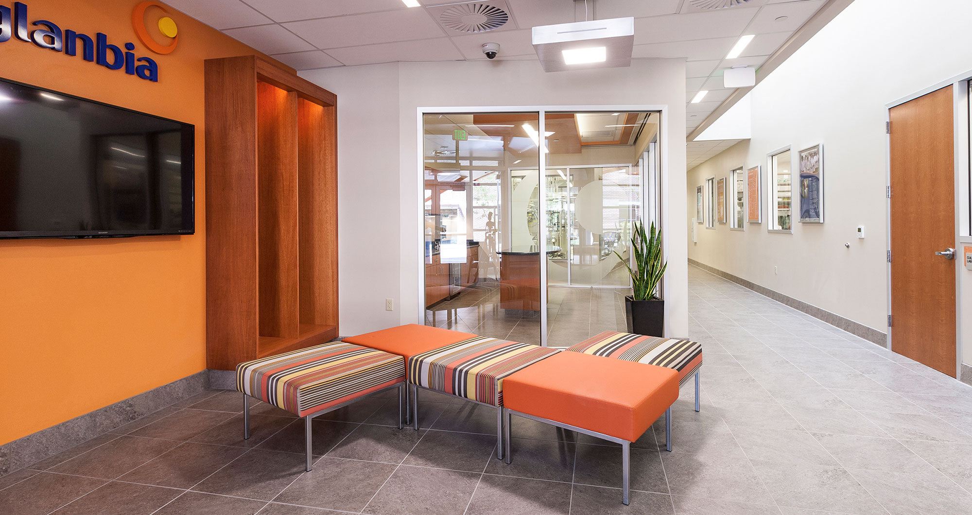 In keeping with Glanbia’s corporate identity and emphasis on high quality environments for its employees, the facility is very energy efficient and uses interior glass walls to open up lab space and convey natural light.