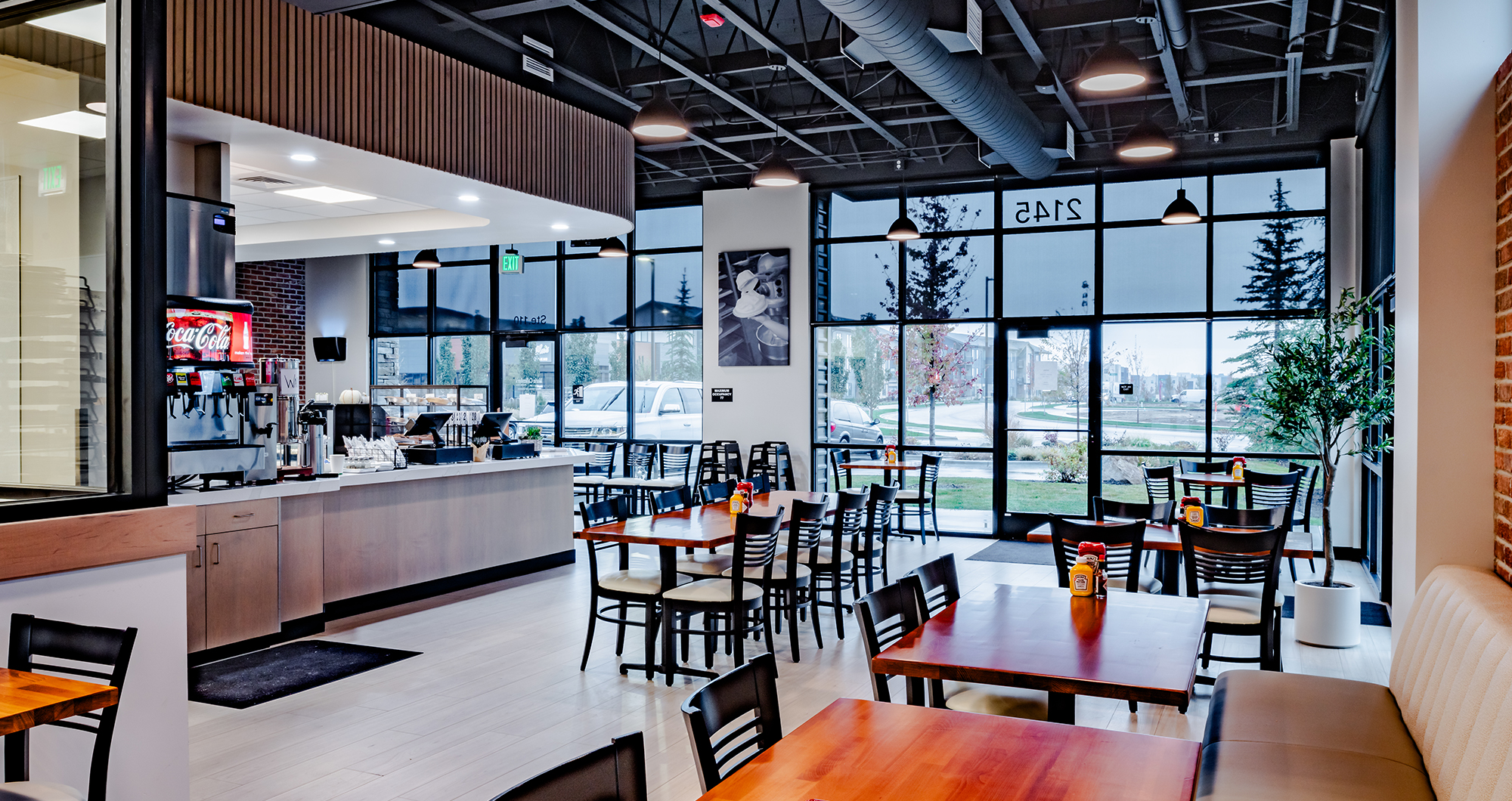 The architecture team worked closely with the owner to create a floorplan that optimized the front of house and coordinated with the kitchen equipment provider to ensure the back of house was functional with a proper amount of space for the kitchen equipment and other necessary components. CSHQA’s architects completed the interior of the building, while the CSHQA engineering team provided HVAC and plumbing services. The design team remained available throughout the construction phase for site visits and to answer any questions that came up in the field.