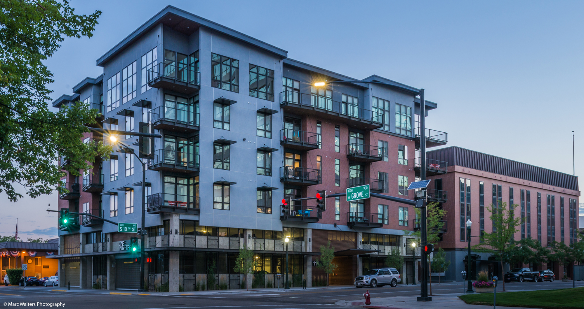 One Nineteen Condominiums are located in downtown Boise near shopping, restaurants, and the city’s business core. It is a new structure of four levels of condos over two levels of parking. The investors’ target market was active, urban professionals seeking a higher quality of lifestyle than the typical city condo. The result is a no-compromises, sophisticated loft-style building.