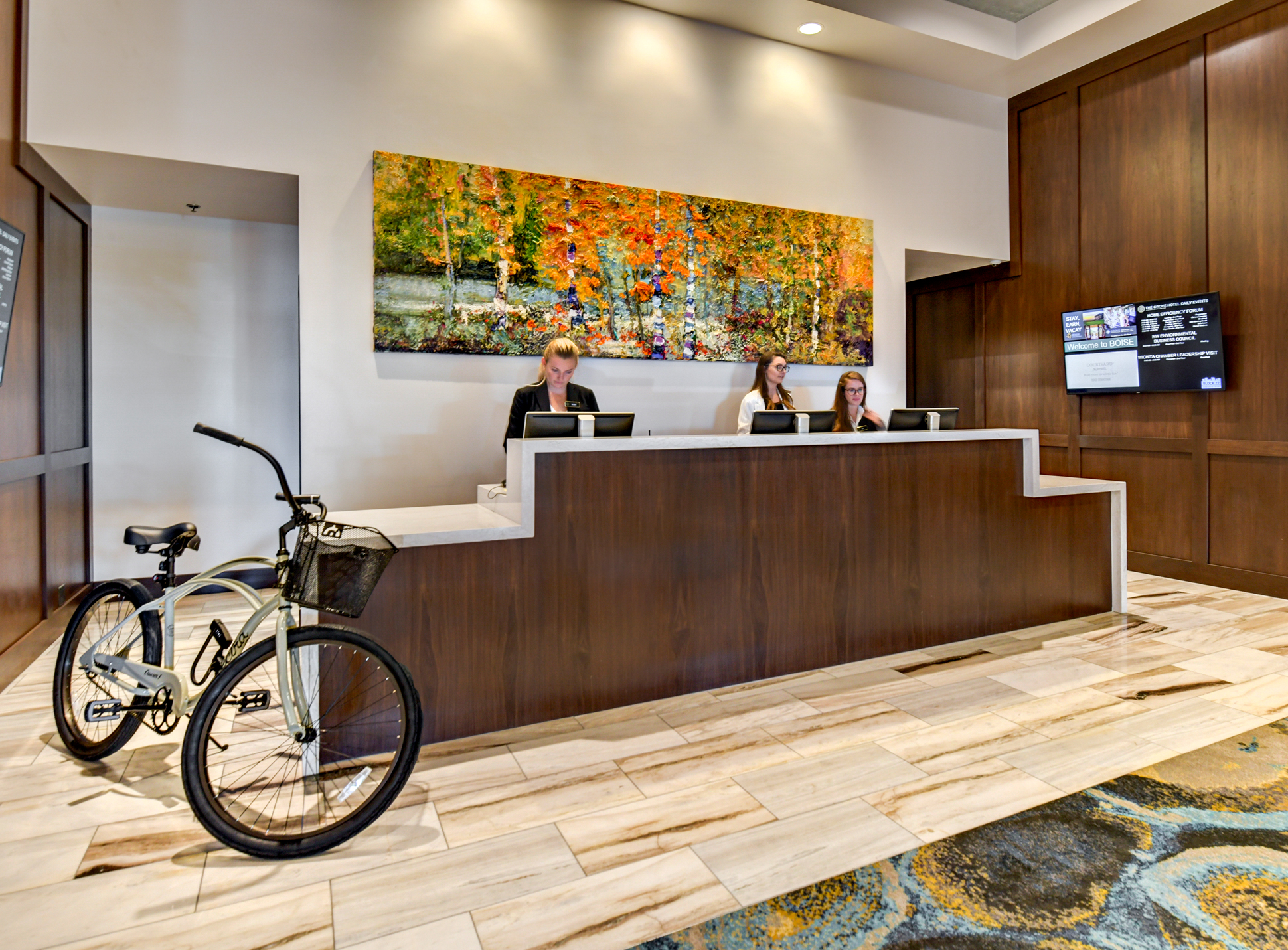 The owners of The Grove Hotel were looking to redesign and modernize the hotel entry, bar, lobby and restaurant. They wanted a new look and amenities to compete in Boise’s growing downtown hotel and restaurant market.