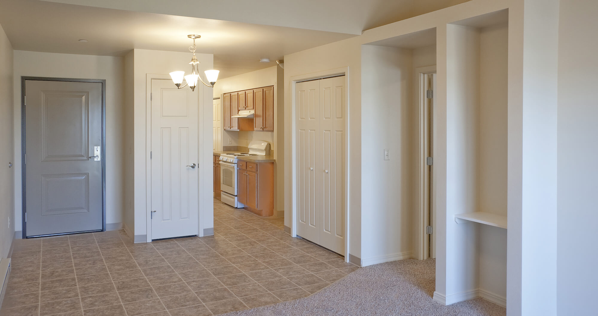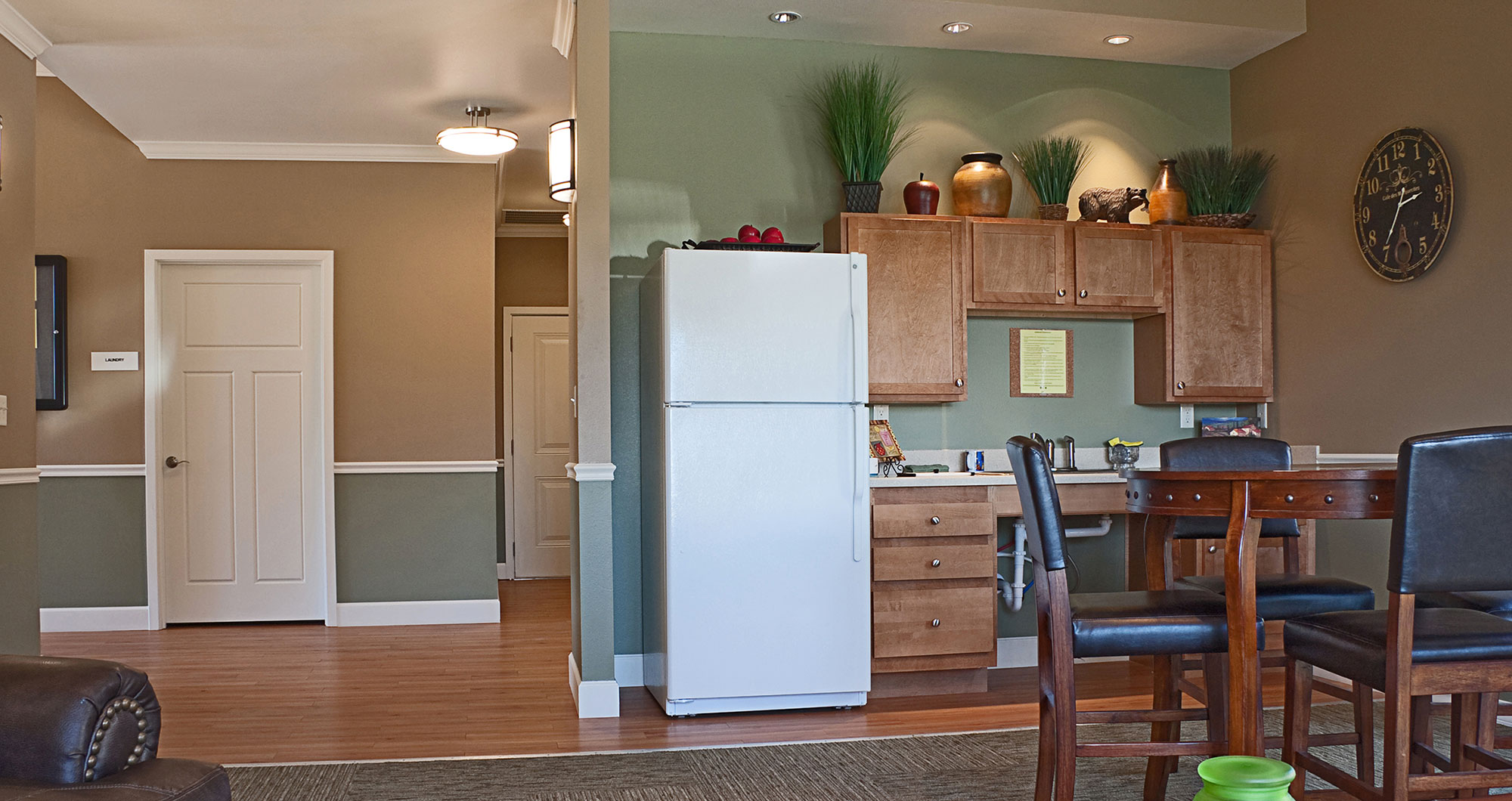 The complex, which consists of one- and two-story structures, has three residential buildings that contain a total of 36 living units (four studio apartments; 8, one-bedroom apartments; 18, two-bedroom apartments; and 6, three-bedroom apartments). A variety of colors provides interest and the buildings relate to surrounding land uses in scale. The units are clustered to avoid wetland areas and to create community open space. An additional community building has an office, exercise room, laundry, gathering space and accessible rest rooms.